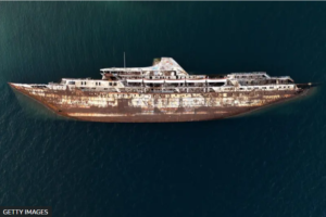 Ni completamente dentro del mar ni fuera de él, el casco oxidado del crucero abandonado MS Mediterranean Sky –que volcó en el golfo de Elefsina, al oeste de Atenas, en 2003– fue fotografiado en agosto en su estado perpetuo semisumergido. Durante más de 20 años, el buque ha permanecido medio hundido, deteriorándose lentamente, hasta caer en el olvido.
