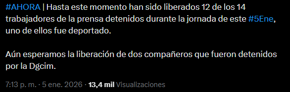 Sin embargo, el gremio detalló que la liberación no fue plena en todos los casos. Se confirmó que uno de los periodistas liberados, corresponsal de un medio extranjero, fue deportado del país inmediatamente después de su proceso.