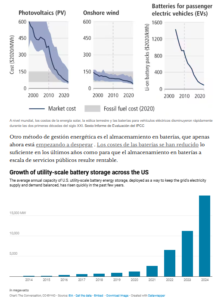 Los costes de la electricidad renovable y las baterías disminuyen