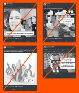 El objetivo de estos mensajes fue doble durante la campaña: por un lado, desacreditar a los partidos rivales de AfD, como Los Verdes, el Partido Socialdemócrata (SPD) del canciller Olaf Scholz y la Unión Cristianodemócrata (CDU); por otro, promover una imagen positiva de AfD.