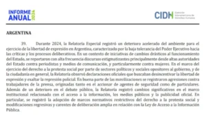 El informe del organismo expone graves señalamientos contra el gobierno de Javier Milei. Hablan de estigmatización, persecución y restricciones al ejercicio periodístico.