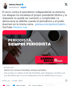 “Usar medidas de protección judicial para amordazar el periodismo de investigación es una violación flagrante de los estándares internacionales de libertad de expresión”, advirtió Jose Zamora, director regional para las Américas del CPJ. “El poder judicial panameño debe garantizar que la ley no se utilice para proteger a figuras públicas del escrutinio”.