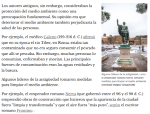 Sin embargo, la mayoría de los autores antiguos no solían relacionar el daño ambiental o la contaminación con el cambio climático tanto como lo hacemos hoy. La excepción se da cuando hablan del drenaje de lagos o la desviación de ríos, lo cual preocupaba a muchos.
