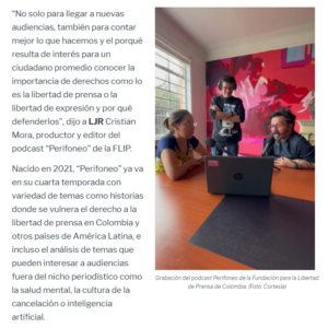El auge de los podcasts también fue para la Fundación para la Libertad de Prensa (FLIP) de Colombia un aliciente para experimentar con nuevos formatos para comunicar y difundir el trabajo y misionalidad de la organización.