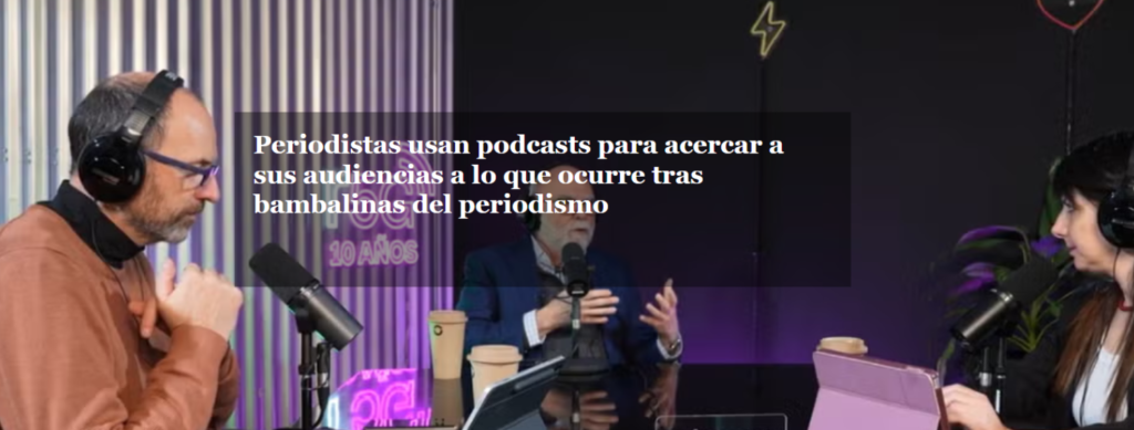 Nacido en 2020, y desde 2024 convertido en video podcast, presenta conversaciones con “importantes referentes de la región” quienes intercambian ideas, aprendizajes y herramientas. Por sus micrófonos han pasado voces como las del ya fallecido Mario Tascón, socio fundador de Prodigioso Volcán; Martin Baron, exeditor del Washington Post; Rosental Alves, director del Centro Knight que edita LJR; Jeff Jarvis, exprofesor; Mari Luz Peinado, de El País; Pepe Cerezo, director y escritor de Evoca Media; y Ana Paula Valacco, community manager de JournalismAI; por mencionar algunos.