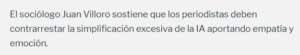 Villoro, profesor en algunas de las más prestigiosas universidades y columnista del periódico mexicano Reforma, argumenta que, en ese contexto, la empatía de los periodistas fomenta una conciencia informativa, la cual es esencial para la preservación de la cultura.