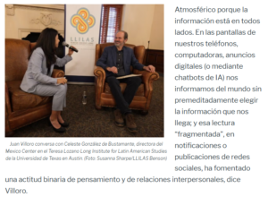“La velocidad de información y la necesidad de dar respuesta instantánea hace que nosotros tengamos una actitud polarizada en donde estamos a favor o estamos en contra, y parecería que en medio no hay nada”, dijo Villoro a LatAm Journalism Review (LJR). “Los matices, las recapacitaciones, las enmiendas, una serie de consideraciones se pierden en favor de un resultado muy preciso, y eso desde luego está simplificando la toma de decisiones”.