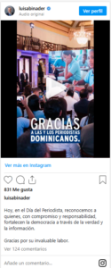 Asimismo, Abinader felicitó a los periodistas en su día y reiteró su reconocimiento a la labor que realizan en beneficio de la sociedad dominicana y el desarrollo democrático del país.