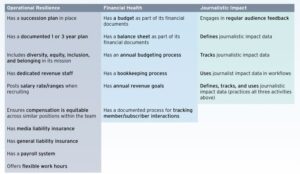 En colaboración con Impact Architects, analizó esos datos y elaboró un informe , publicado el miércoles , que describe una “hoja de ruta para la sostenibilidad de las noticias locales” que guía a las redacciones a través de pasos concretos a seguir en diferentes etapas del crecimiento organizacional.