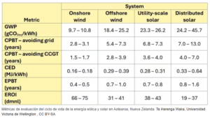 . CPBT: tiempo de recuperación de la inversión en carbono (cuánto tiempo necesita una tecnología estar operativa antes de que las emisiones de su ciclo de vida sean iguales a las emisiones evitadas, ya sea utilizando la red y sus emisiones asociadas o turbinas de gas natural convencionales).