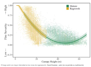 Una vez que pasó el incendio, recopilamos más datos para poder comparar los daños causados ​​por el fuego (medidos por los daños a la copa de los árboles) y los efectos en los microclimas tanto en los bosques en regeneración como en los bosques maduros no talados.