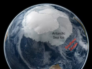 El Océano Antártico rodea la Antártida, que está rodeada de hielo marino. NASA