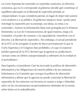La política en cuestión se conoce como “distorsión informativa”, y estos comisionados afirman que Carr la está utilizando de manera inconstitucional :
