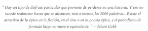 El periodismo de formato largo es un género aparte. Hay un placer particular que surge al sumergirse en una historia. Y eso no suele ocurrir hasta alcanzar las 3000 palabras. Quizás sea un placer en extinción, porque la economía y la economía de la atención han impulsado la sucinta en todo. Pero, con un perfil que abarca todo, si se habla de quién es una persona, o de su importancia para la vida, la cultura, una disciplina o un proyecto en particular, es necesario construir un contexto extenso, y eso requiere tiempo. Existe el atractivo de lo épico en la ficción, el cine o la poesía épica, y el periodismo de formato largo es nuestro equivalente.